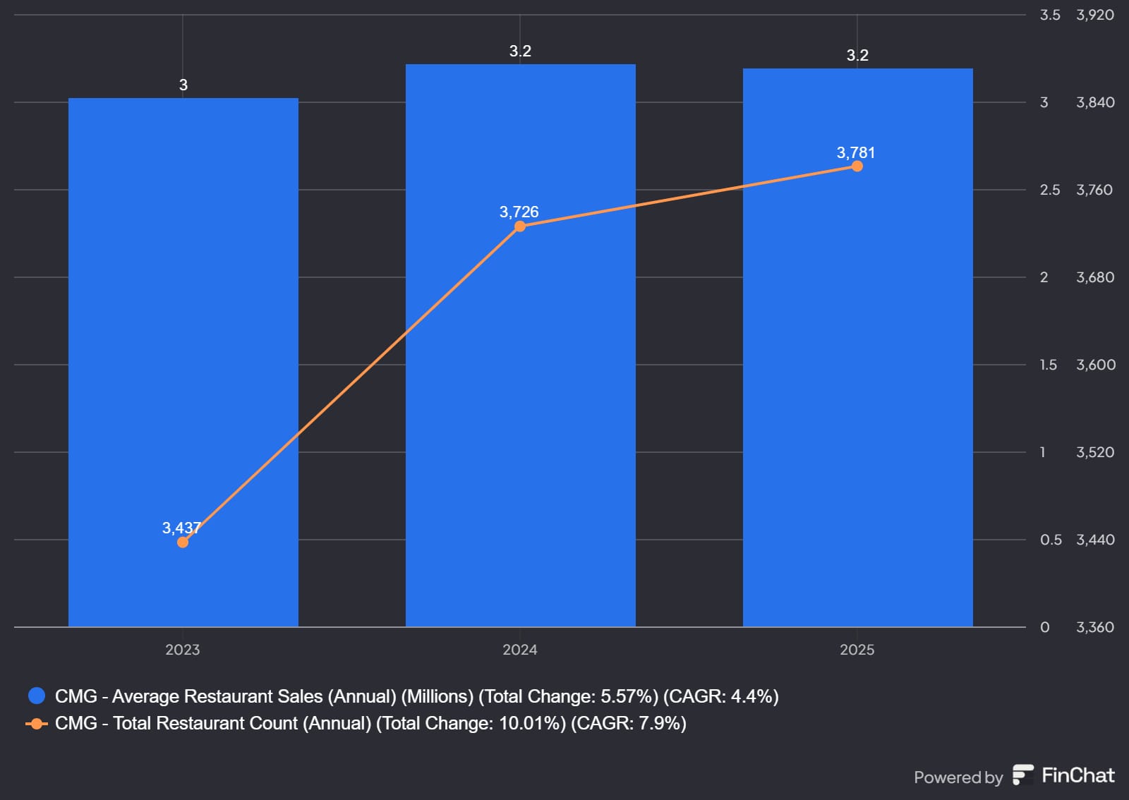 - Digital Sales: Represented 35.4% of food and beverage revenue, highlighting Chipotle’s strong digital infrastructure.